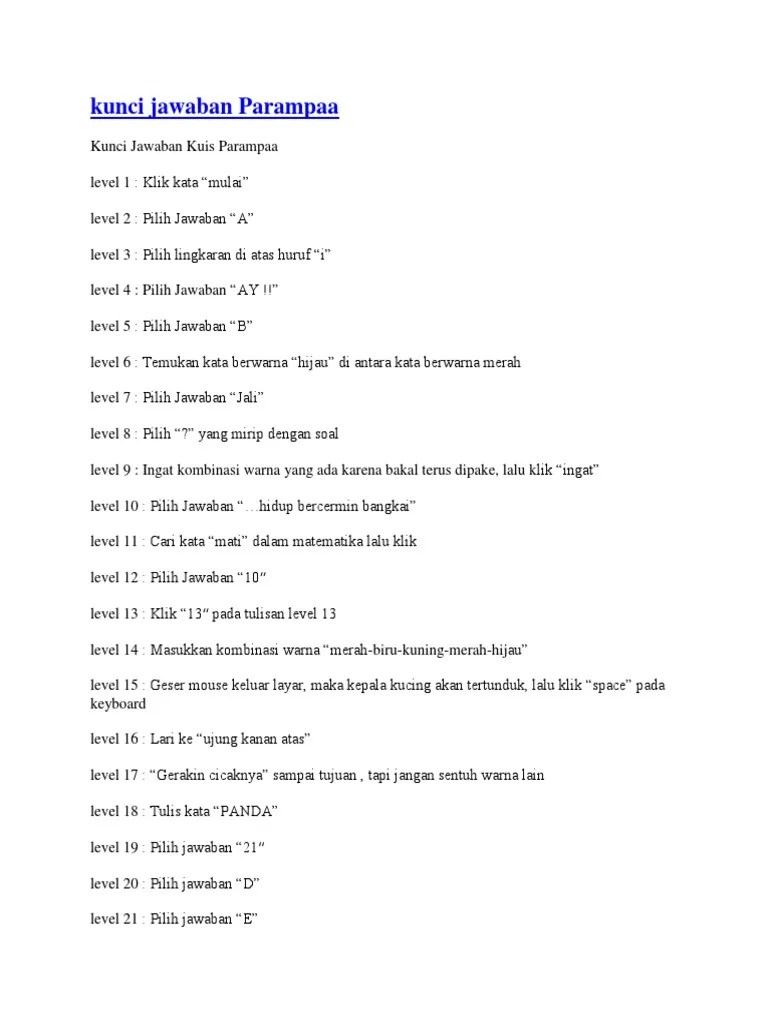 Ini gan gue ada solusi biar . Level 1 klik tulisan mulai. Hai gan, buat yang udah setres mikirin jawaban quiz parampaa. Kunci jawaban quiz parampaa 1,2,3 ( kita semua ) + password. Hmm, sekarang fokus ke cheat password quiz parampaa 1 dan quiz .